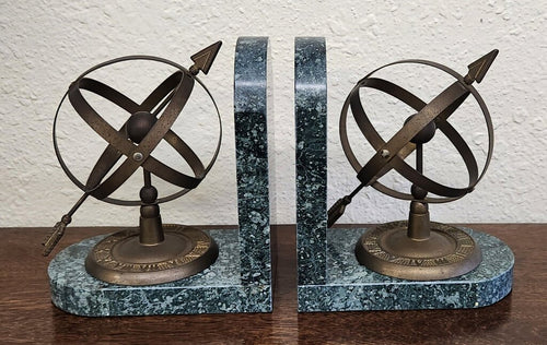 Vintage Brass and Marble Armillary Bookends