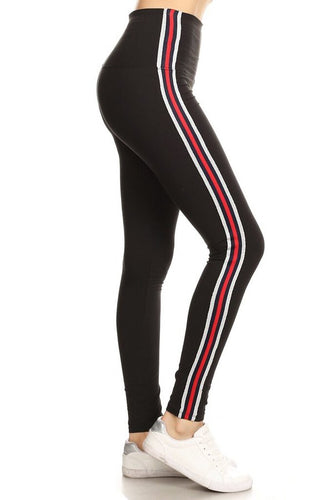 NEW One Size Leggings - Black with Red & Silver Stripe LT69