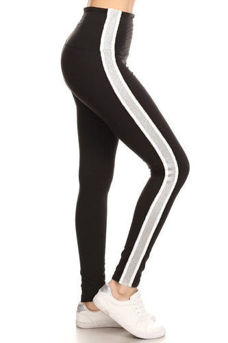 NEW One Size Leggings - Black with Light Purple & Silver Stripe LT77