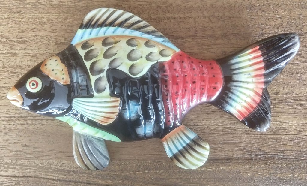 Ceramic Handpainted Fish Wall Decor - Black Multi