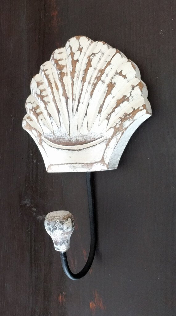 NEW 9" White Wood Scallop Shell Wall Hook MDA-SC-53W-S