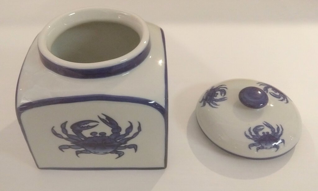 NEW Blue & White Porcelain Crab Canister - Thailand