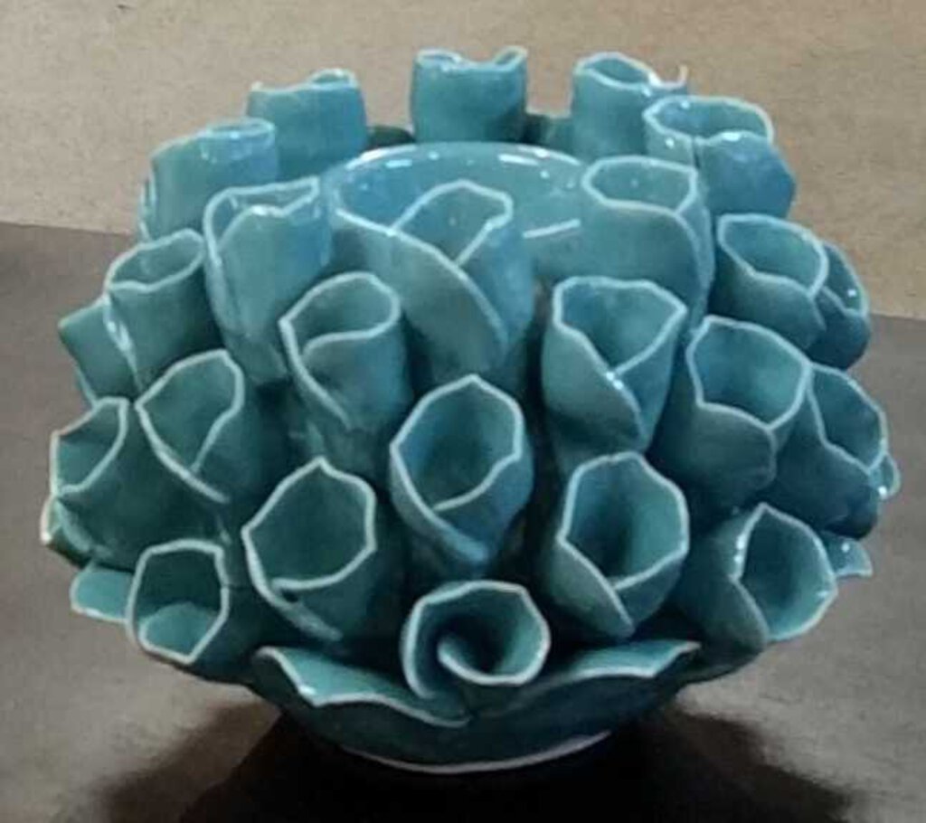 NEW Faux Coral Candle Holder - Aqua 146-43211-0