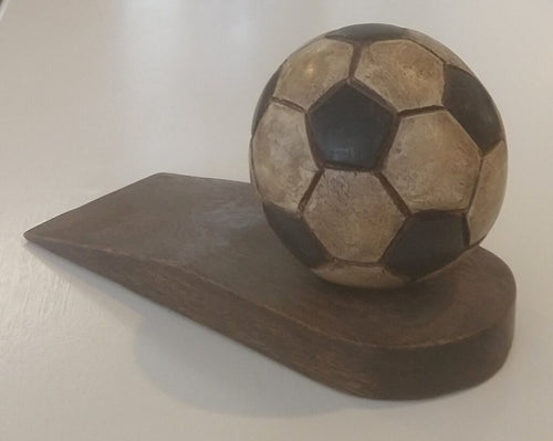 NEW Hand-Carved Acacia Wood Soccer Ball Door Stop - DSSOC-8BW