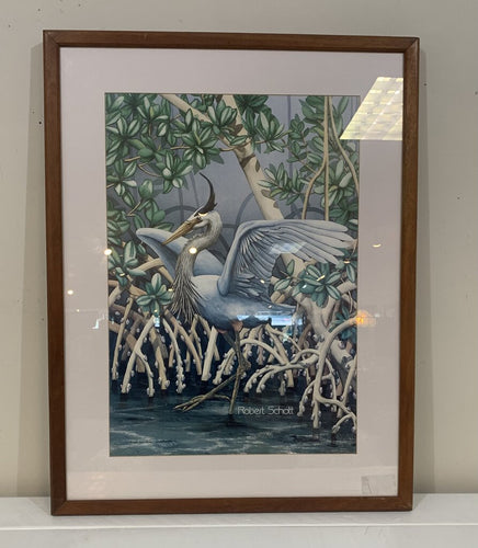 23.5x31 Framed & Matted Heron Print by Robert Schott