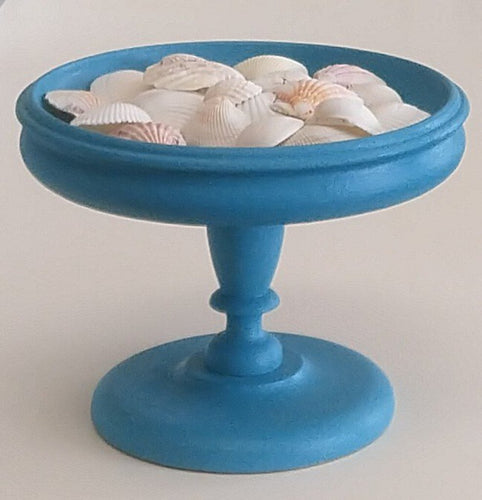 Hand-Painted Turquoise Pedestal Bowl with Shells