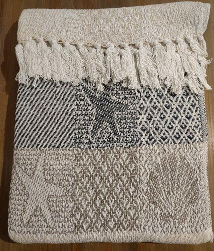 NEW Shells and Starfish Cotton Throw - Dark Blue, Tan & White