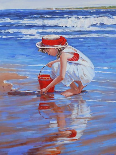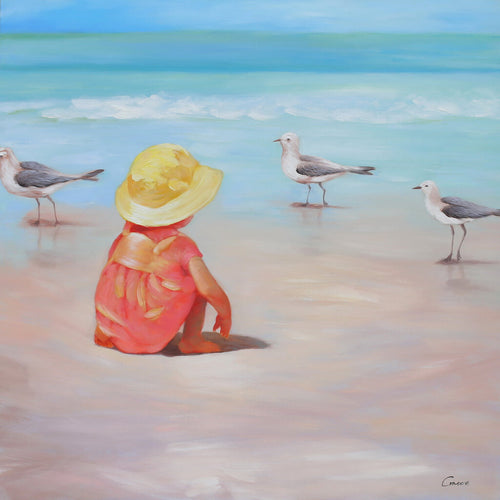 NEW Oil Painting - Girl watching Seagulls - cb-2015