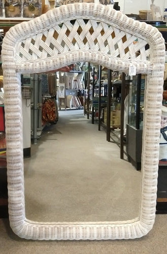 NEW 27"x43" Sandy Beach Arched Washed White Wicker Mirror