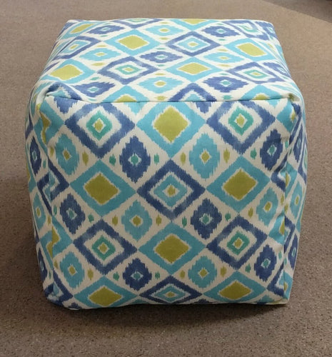 NEW Blue & Lime Patterned Pouf