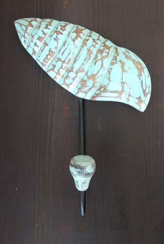 NEW 9" Aqua Wood Spiral Shell Wall Hook MDA-SC-53A-A
