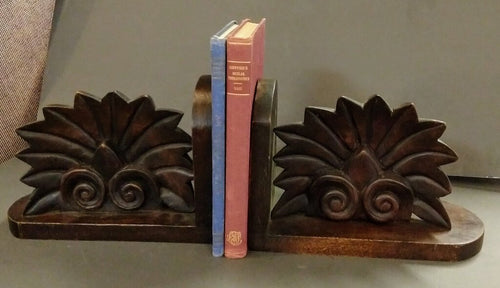 NEW Hand Carved Wood Bookends - Made in Thailand