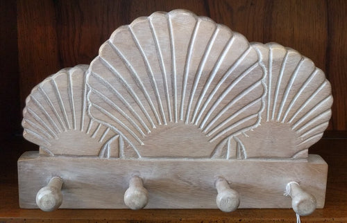 NEW 4 Peg Hand Carved Acacia Wood Sea Shell Rack - Thailand