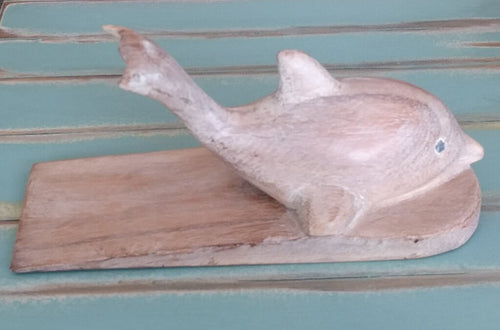 NEW Hand-Carved Acacia Wood Dolphin Door Stop - Thailand