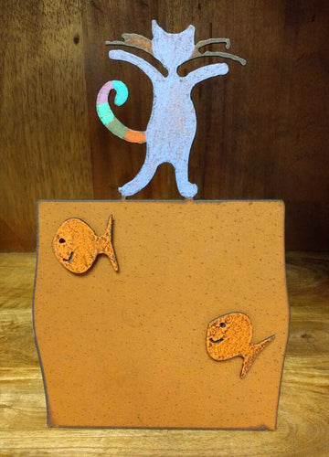 NEW Metal Memo Photo Board with Two Magnets - Cat and Fish