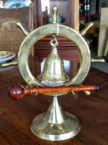 NEW - Brass Nautical Ship Wheel Bell with Wood Mallet