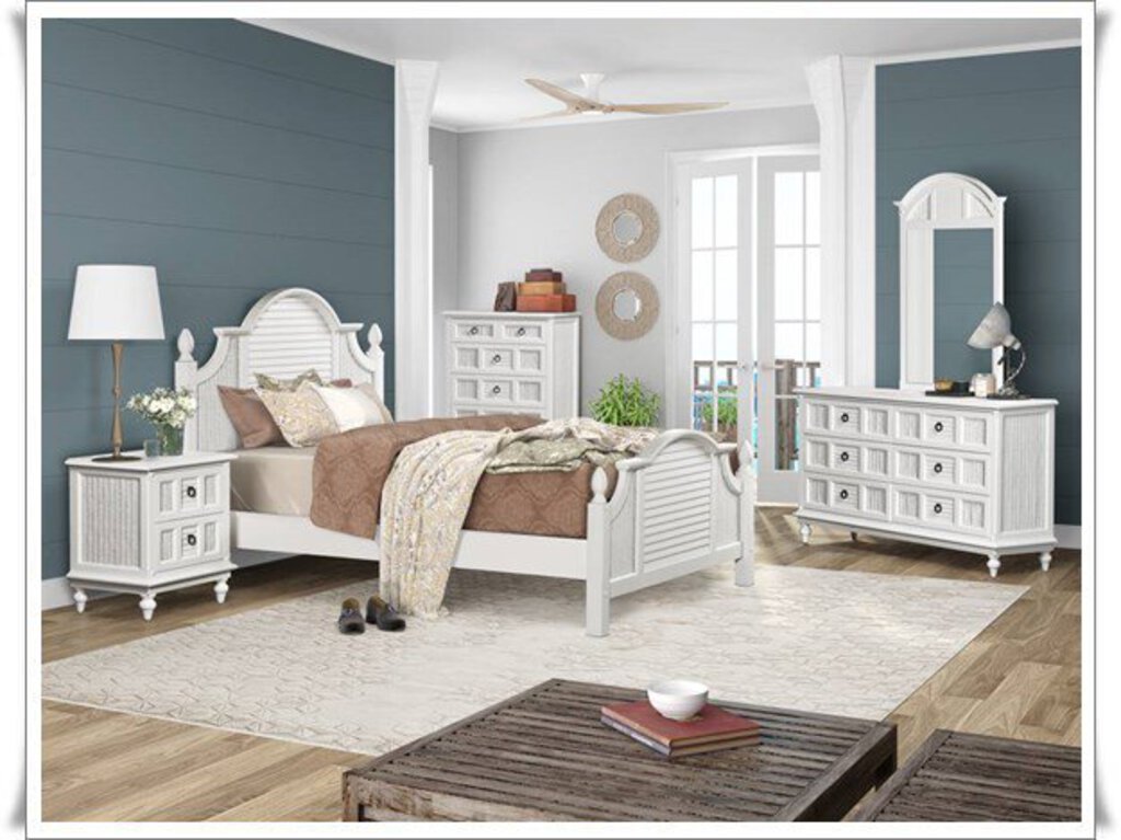 This headboard creates a rich tropical look by combining wood, wicker, and shutters. The group also features turned wood feet and metal hardware to add a classy look. The headboard is bracketed so that it can be used in a stand-alone setting or as part of a complete bed
