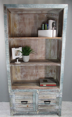 NEW Whitewashed Reclaimed Wood Bookshelf 2 Shutter Doors MDA-20-25C