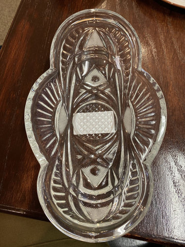Shallow Oval Cut Glass Bowl 10"
