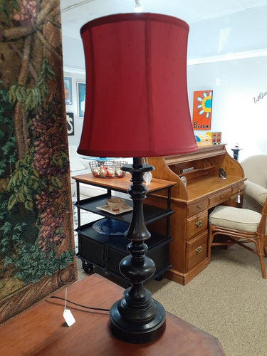 Black Table Lamp with Crimson Shade