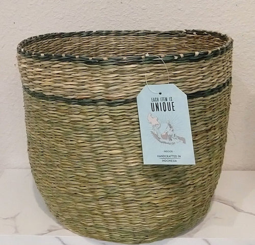 NEW 11"H Handwoven Indonesian Sea Grass Basket