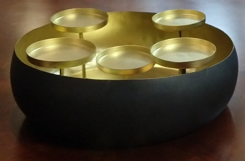 NEW 14" Round Metal Pillar Candelabra - Black/Gold