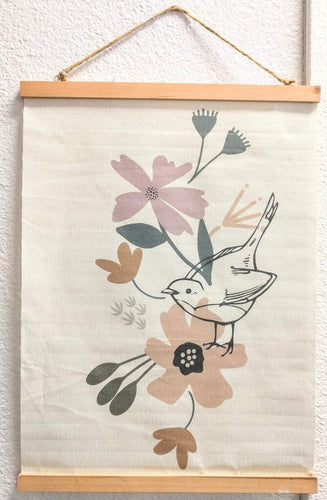 NEW Rolled Canvas Wall Decor - Bird & Flowers