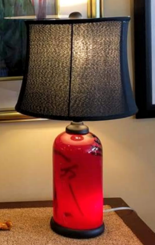 NEW 24" Red Glass 3 Way Table Lamp w/ Shade (Crack at Base)