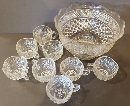 Crystal Punch Bowl and 8 Cups