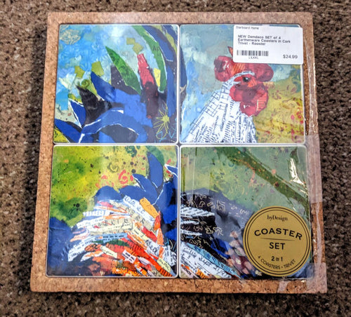 NEW Demdaco SET of 4 Earthenware Coasters in Cork Trivet - Rooster