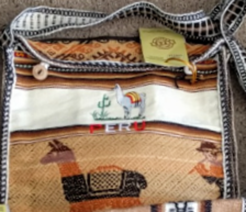 NEW Peruvian Handbag - Tan, White, "PERU", Alpaca