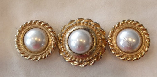 Vintage Set of 3 Gold Tone Faux Pearl Button Covers