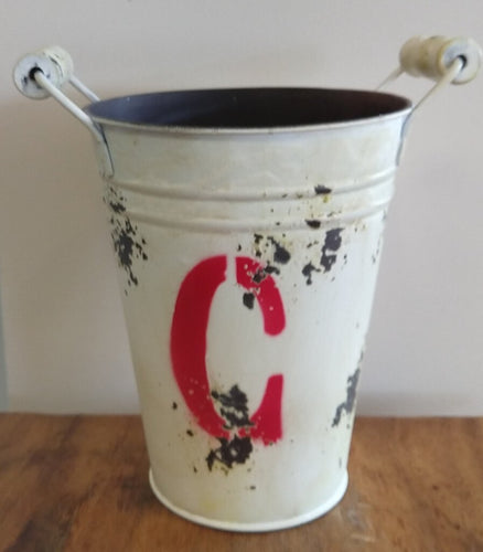 NEW Distressed Metal Bucket - White UW2538-C