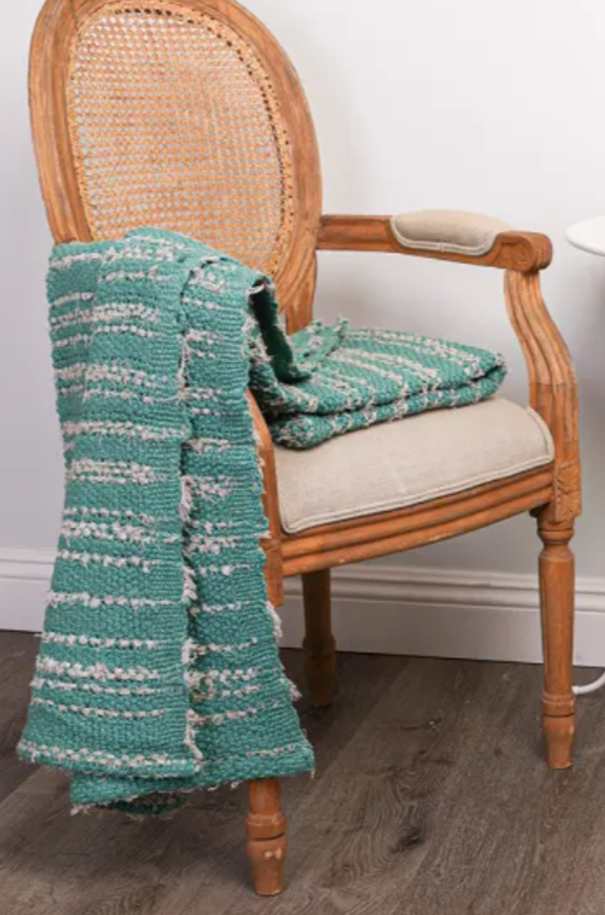 By Amity Home. 50" x 60". 100% cotton. Woven in a basket weave style intermixed with contrasting eyelash yarns for a worn, vintage effect.