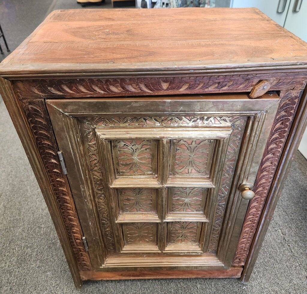 Reclaimed Wood & Brass Nightstand - as found - Made in India