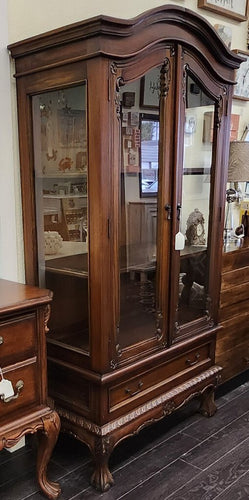 Vintage Glass Doors Carved Detail Curio Cabinet