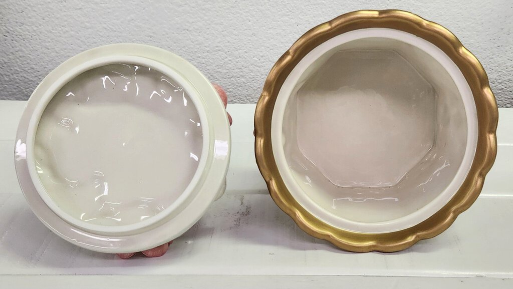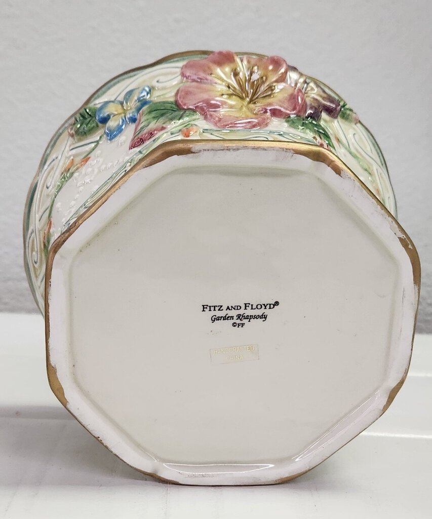 By Fitz and Floyd. Hand painted porcelain. Original box. 8" H, 6" diameter.