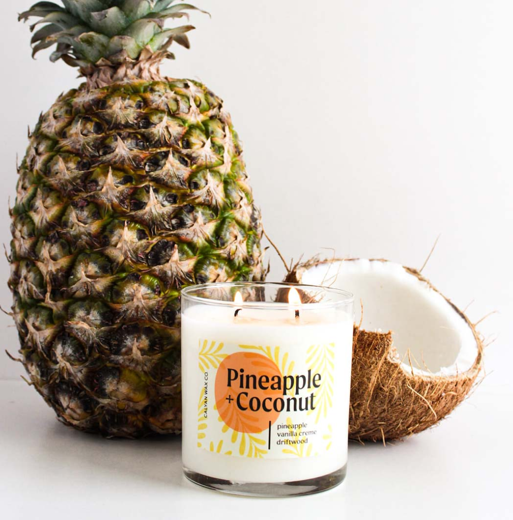 By Calyan Wax Co. 45 hr burn time. 8.8 oz. of soy wax grown in America - Phthalate-free fragrance oils infused with essential oils - 2 (two) metal-free cotton wicks - Non-toxic, cruelty-free, and paraben-free. A summer getaway filled with endless blue skies, radiant sunshine, warm sand between your toes, and a sweet tropical drink in your hand. Three notes: fresh pineapple, vanilla creme, and driftwood.