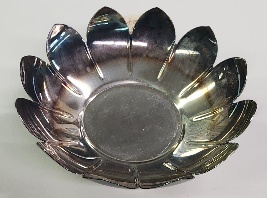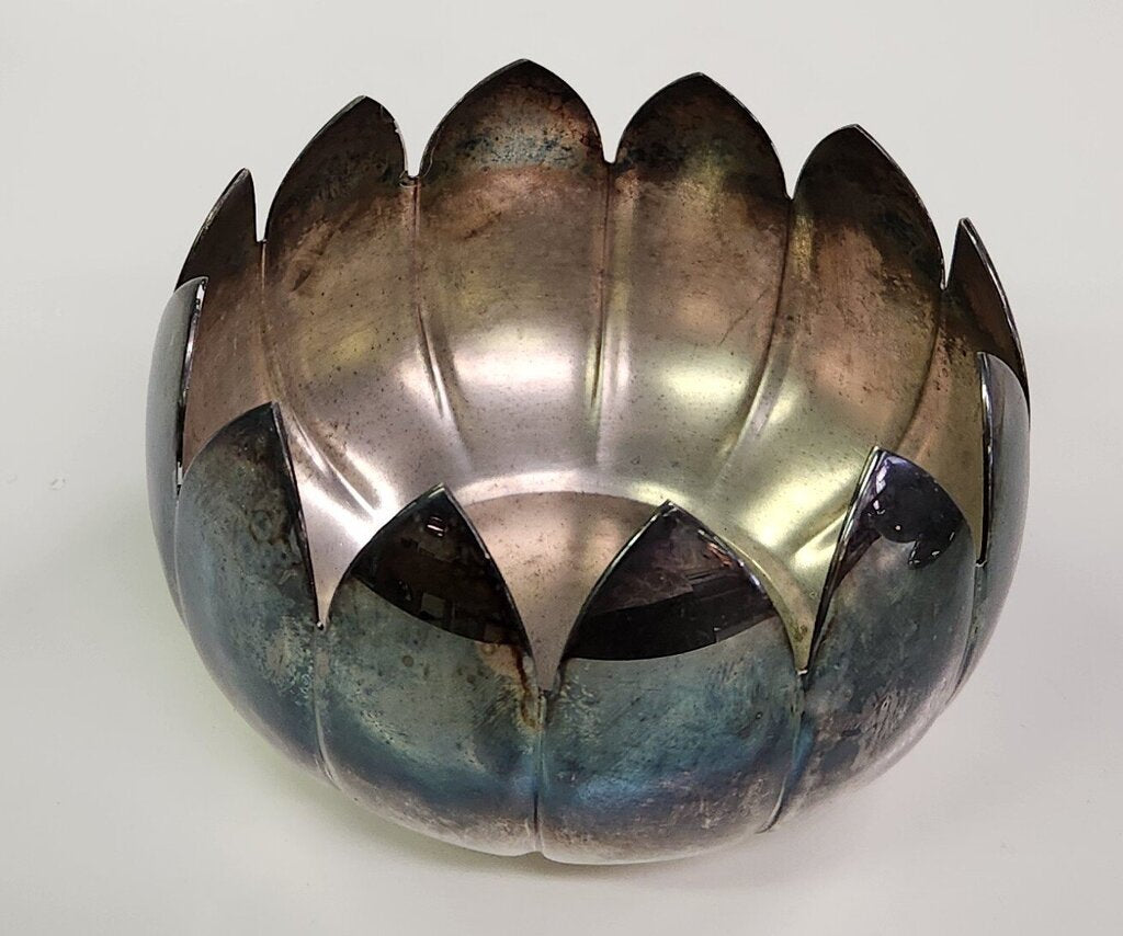 Silverplated. Includes outer and inner bowls. Flower holder not included.