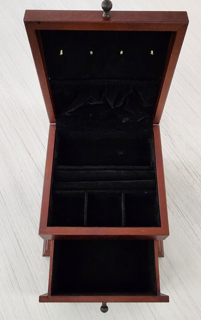 Tri-Coastal Design. Lift top and one drawer. Felt lined. 9.5" x 9.5" x 7"H.