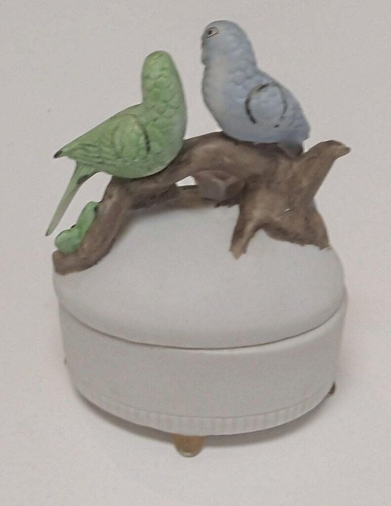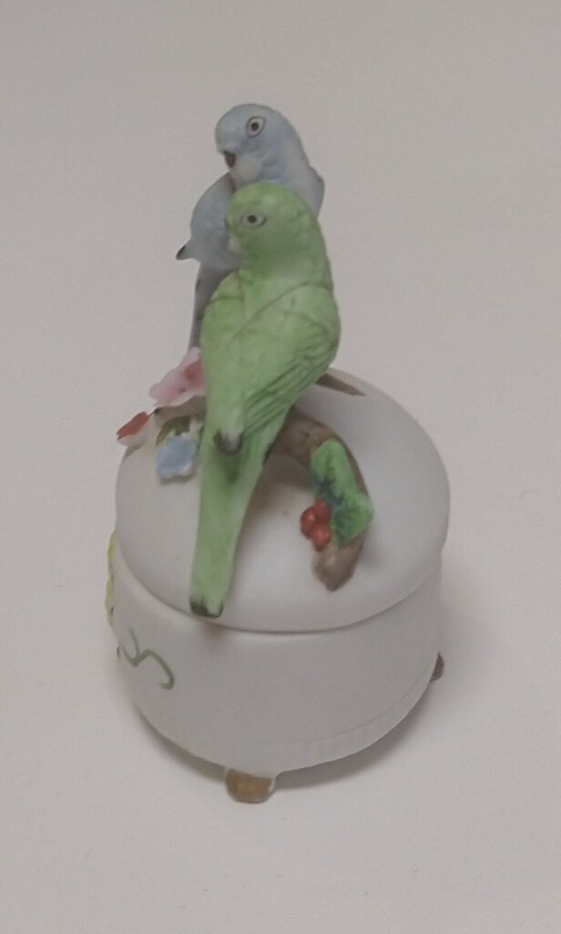 Vintage Lefton China 03433 Trinket Box - Green & Blue Birds