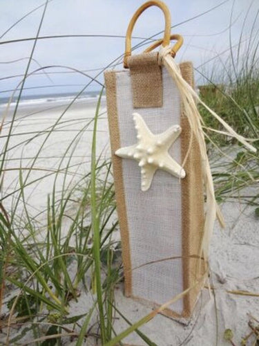 NEW Canvas Wine Bottle Bag-Single Tall with Starfish