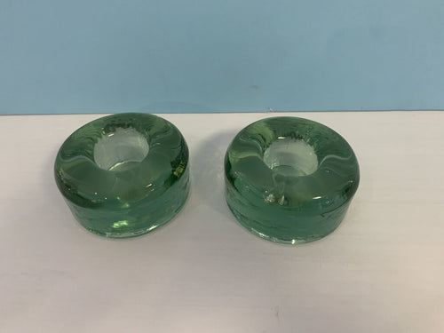 Pair of Green Glass Candle Holders
