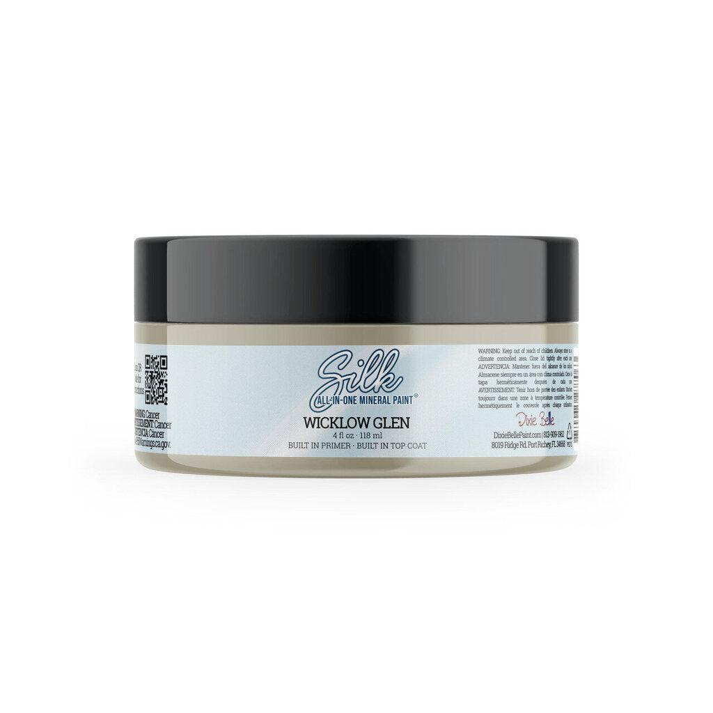 Breathe in the peaceful beauty of the Irish countryside with Wicklow Glen. A soft, muted sage green inspired by moss-covered paths and misty hillsides. This gentle green brings a calming, natural vibe to any space and pairs beautifully with neutrals, warm wood tones, and layered earth tones. Silk All-In-One Mineral Paint offers a built-in primer, stain blocker, and topcoat, making it easy to achieve a long-lasting finish without extra prep. Enjoy a silky-smooth, self-leveling finish that’s durable and mildew-resistant.