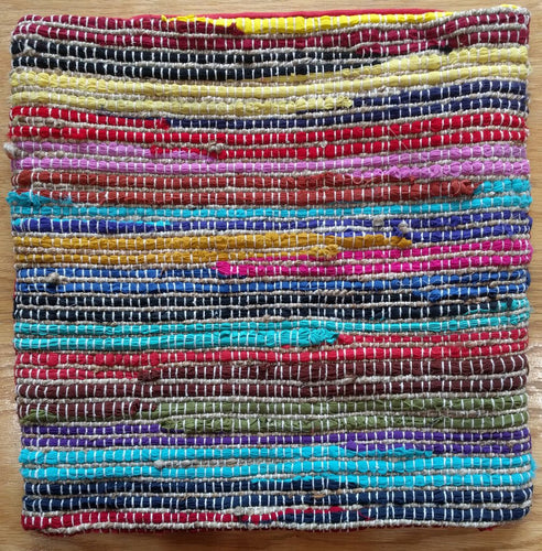 NEW 15" Handmade Rag Rug Style Pillow Cover - Multi Front / Red Back