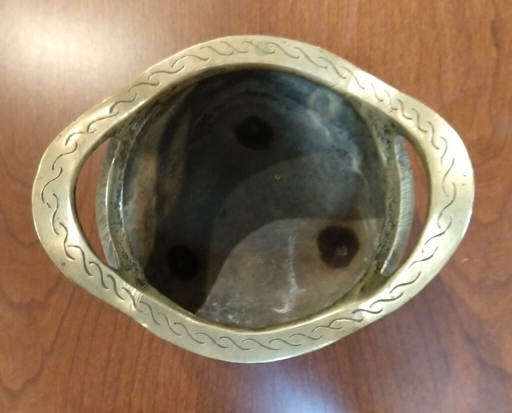Raised Chinese Mark. 5"H. 5.5" diameter. 7" diameter at handle edge,