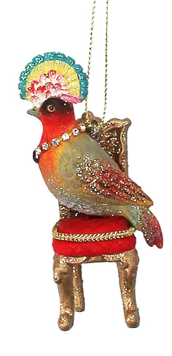 NEW Gisela Graham Ornament - Fantasy Jeweled Bird on Chair 13502B