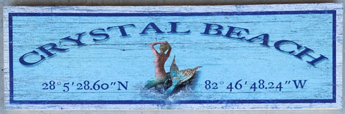 NEW Sign - Crystal Beach w/Mermaid Latitude/Longitude - M