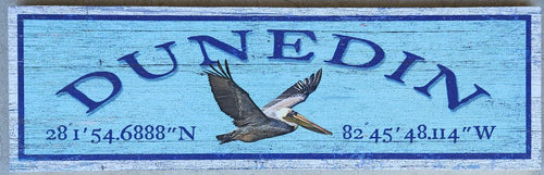 NEW Sign - Dunedin w/Pelican Latitude/Longitude - M