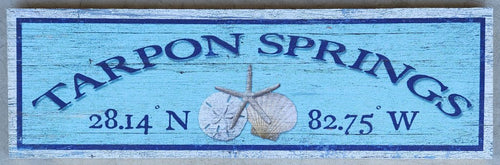 NEW Sign - Tarpon Springs w/Shells Latitude/Longitude - M